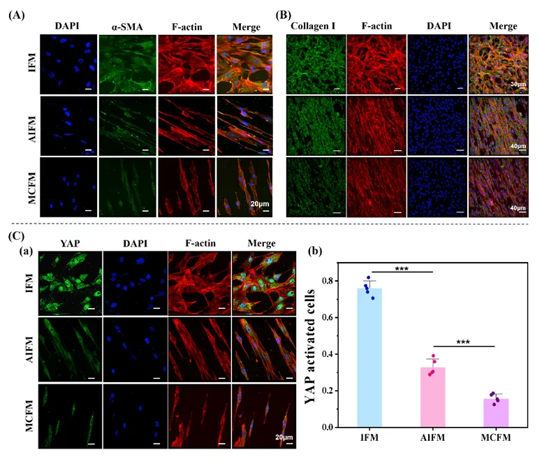 成纤维细胞在PAPC IFM、AIFM 和 MCFM表面向肌成纤维细胞的分化
