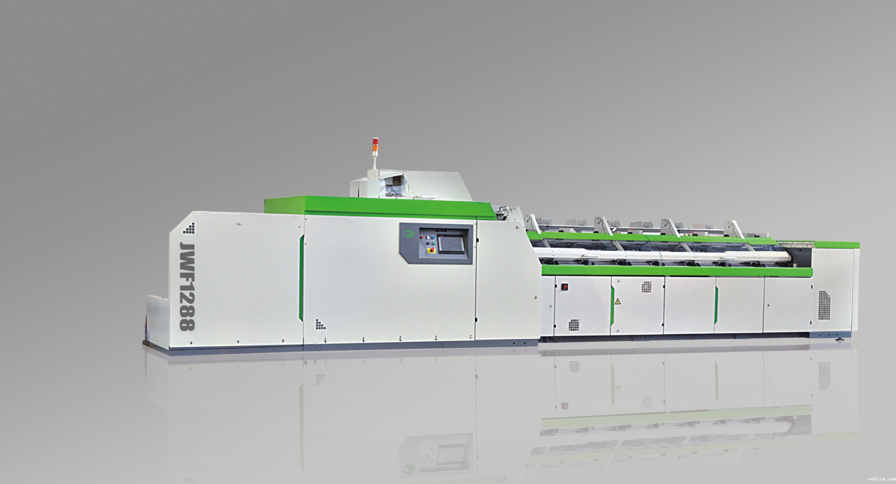 (2)JWF1458A型粗纱机具备以下特点:(a)外置式自动落纱成熟稳定,落纱时间控制在3min左右,自动落纱、自动生头、空满管交换成功率高;(b)锭翼/筒管采用多电机齿形带分组传动,免维护降低工人劳动强度,有效提升设备生产速度及效率,降低设备运转时的噪音及能耗;(c)采用全电子牵伸技术,用户在人机界面或远程终端上设定纺纱工艺,使翻改品种的过程更为迅速、便捷;(d)智能张力调整技术的应用,显著提升了成纱的品质和设备的运转稳定性,百锭时粗纱断头率减少15%左右;(e)基于视觉识别技术的粗纱单锭断纱检测系统为国内外首创,可以有效防止缠罗拉、缠皮辊,同时具有断纱统计分析功能,并上传车间管理系统。