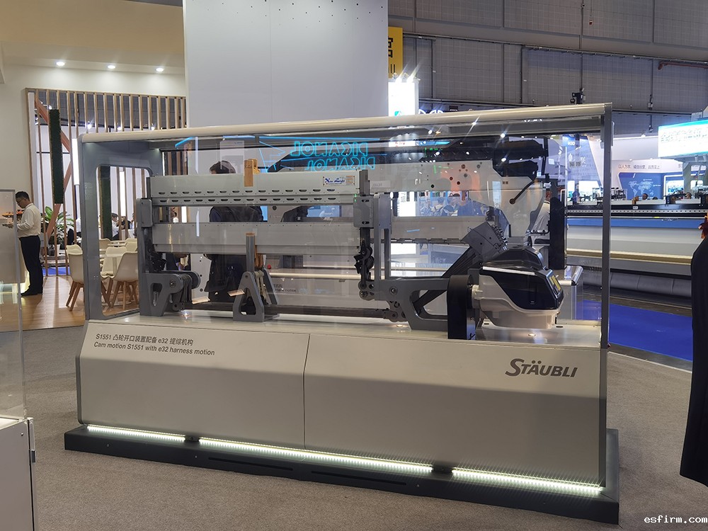 自史陶比尔成功推出S3000系列-S3017/S3018/S3008型高速旋转式多臂以来,这一系列产品一直受到市场的高度认可和青睐。在本届展会上,史陶比尔再次展现其技术创新的实力,展示其新推出的S3018旋转式多臂机。该机型凭借高速度、低能耗、低噪音的三大优势,保证了综框在任何负载下都能以极高的速度精准运行。在喷气及喷水织机中应用时,最高工业车速可达700 rpm;在剑杆织机中应用时,最高工业车速可达650 rpm,为小花纹织物提供了优异的织造可能性。此外,现场还展出了用于喷气织造的新型S1551凸轮开口装置和S1692凸轮开口装置,其中,S1551凸轮开口装置因其超紧凑设计脱颖而出,搭配新型高性能免维护的e32提综机构,最高工业车速可达1000rpm,可用于生产各类基础组织织物。