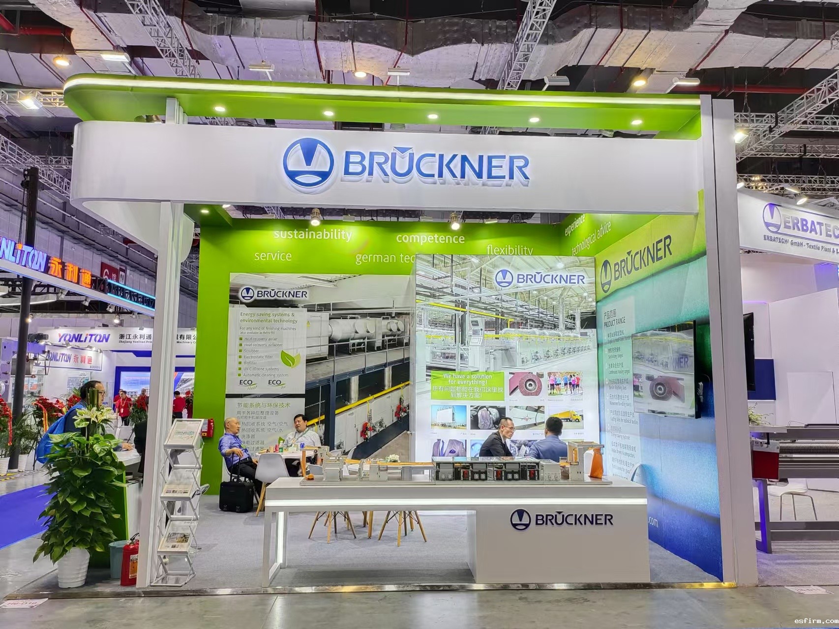 作为染整设备和生产线定制方面的全球领先供应商,Brückner(布鲁克纳)在纺织品、产业用纺织品、非织造布、玻璃纤维织物和地毯的干式后整理领域一直处于世界领先地位。本次展会期间,布鲁克纳展示了其在纺织品后整理和涂层领域丰富的产品系列和服务,并在现场展示了POWER- FRAME定形机的设备模型。