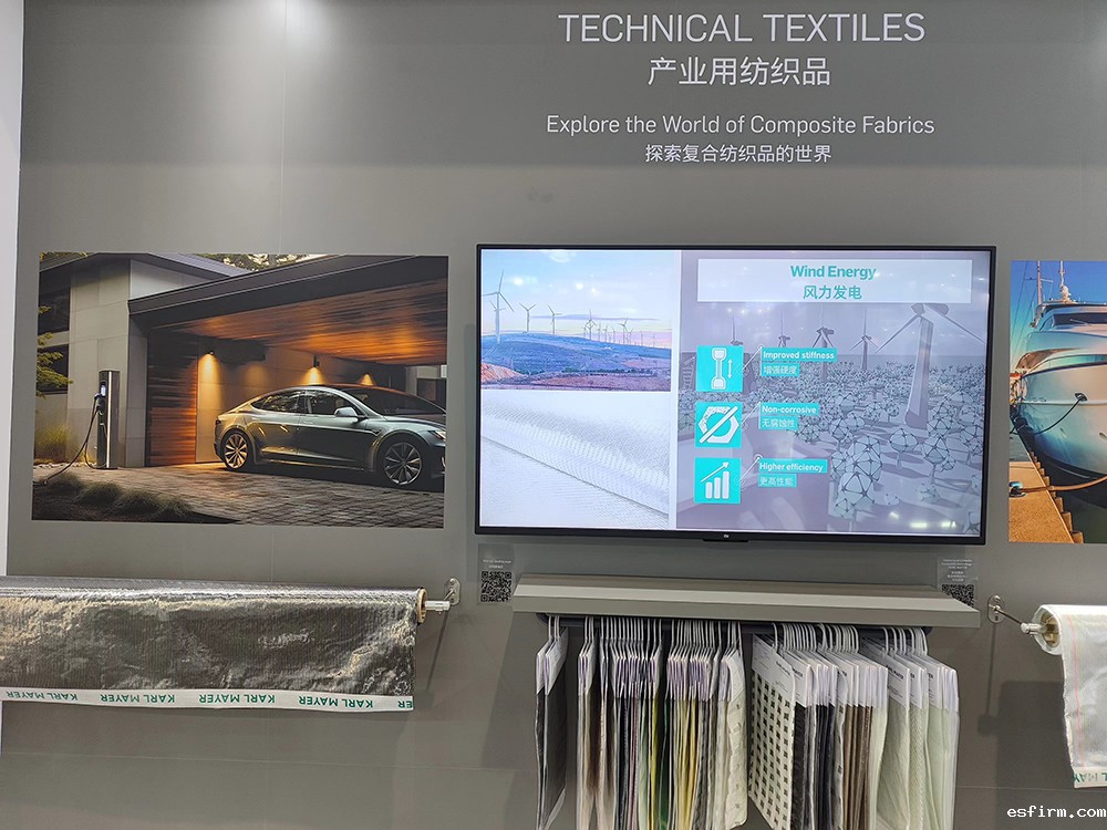 在本届展会上,卡尔迈耶产业用纺织品业务部门还展示了由玻纤和碳纤维制成的无包边织物在复合材料市场的潜力。卡尔迈耶的多轴经编机可以高效生产出最高质量的定制加固织物,并将其广泛应用于轻质建筑领域。