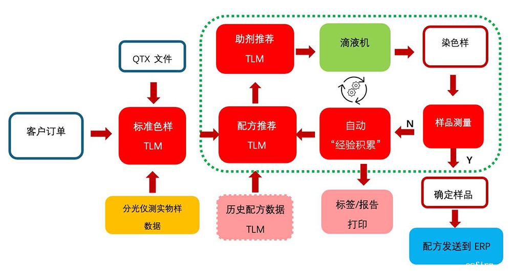 传统的纺织色彩管理存在诸多挑战。例如,色彩管理系统往往无法与现代化的生产流程如ERP系统等无缝连接,各板块之间的数据不连通导致管理流程复杂,操作耗时耗力;传统配色主要依靠人工经验,容易受到主观判断的影响,造成误差;工厂配色人员流动导致经验累积困难,工厂难以将其作为生产经验传承下去等。TLM的问世,很好地解决了这些行业难题。