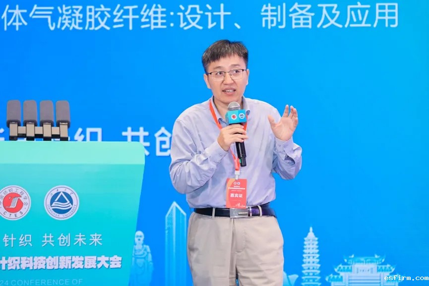 中科院苏州纳米所教授、国家万人计划科技领军人才张学同在题为《胶体气凝胶纤维:设计、制备及应用》的报告中介绍了气凝胶技术的历史背景和在航空航天领域的应用,以及其在民用领域的潜力,特别是在石油化工管道保温、新能源车隔热和纺织领域的应用前景。他分享了课题组在气凝胶技术方面的三大研究方向:胶体气凝胶的过程工程、光与物质的相互作用、气凝胶物液复合材料。他还介绍了课题组在纺丝技术方面的创新,包括发展了限域纺丝技术、液体纺丝、气流纺丝多种纺丝技术,并探讨了气凝胶纤维在可穿戴、吸附和分离、生物医学等不同领域的应用潜力。最后,他提出了当前气凝胶技术面临的挑战和发展机遇,包括智能化、工业级纺丝技术的实现以及基于单根纤维的创新应用等。
