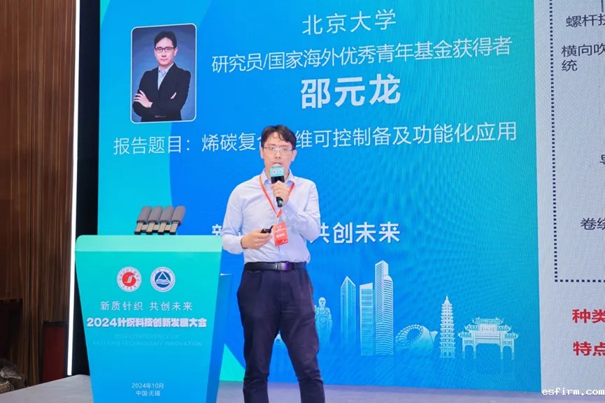 华峰化学股份有限公司品牌推广经理宋扬、福建佶龙机械科技股份有限公司经编机销售经理丁金栋、安徽吴方机电科技有限公司副总经理王荣胜、启东乐欣纺织科技有限公司总经理李沈瑾、无锡市兴盛新材料科技有限公司副总经理罗厚忠、圣东尼针织机器有限公司技术主管/高级工程师岑凌、江苏金龙科技股份有限公司设计总监梁勇分别以《千禧氨纶,助力时尚产业可持续焕新》《双针床贾卡经编机在鞋面及服装上的应用和趋势》《新材料在织针上的应用及发展》《探索全幅衬纬新境界——启东乐欣的成长与发展》《RCGT柔软超高弹纤维》《纬编圆机技术数智化创新及其产品》《针织横机类产品发展趋势及创新应用》等为题,分享了公司的创新产品及应用案例。