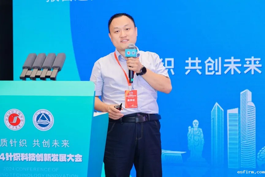 江南大学教授、中国纺织工程学会针织专业委员会主任蒋高明做了题为《针织技术创新与实践探索》的报告,通过案例分析,对经编、圆型纬编、平型纬编技术及其产品创新进行了详细深入的探讨分析,详细介绍了针织技术在不同领域的应用,如内衣泳装面料、高支高密针织品、美利奴羊毛面料、运动休闲面料、防晒面料、航天航空材料等,并强调了针织技术在市场上的潜力和应用前景。此外,他还提到了智能穿戴、3D设计、智能材料、AI技术等新兴技术在针织领域的应用,并对未来的智能化、自动化、柔性化、低碳化、高精化趋势进行了展望。