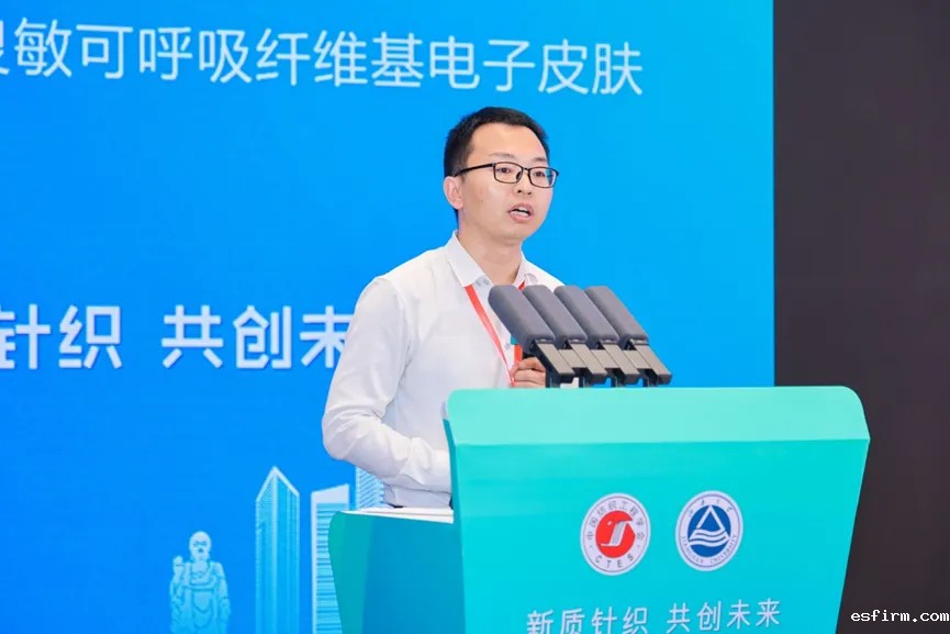 东华大学教授、国家万人计划青年拔尖人才李召岭在《高灵敏可呼吸纤维基电子皮肤》报告中主要介绍了电子皮肤和智能纤维材料的研究进展与应用。他指出,纤维基电子皮肤存在需要额外电源、体积重量大,力学响应差、灵敏度低,机械耐久性差、单纤维易断裂等问题,分享了当前研究进展,总结出高力学响应纤维、自愈合纤维、多功能纤维材料可以构筑高灵敏度、高稳定性、多功能电子皮肤,并展望了纤维基电子皮肤应用于健康监测、智能交互等领域的可能性。