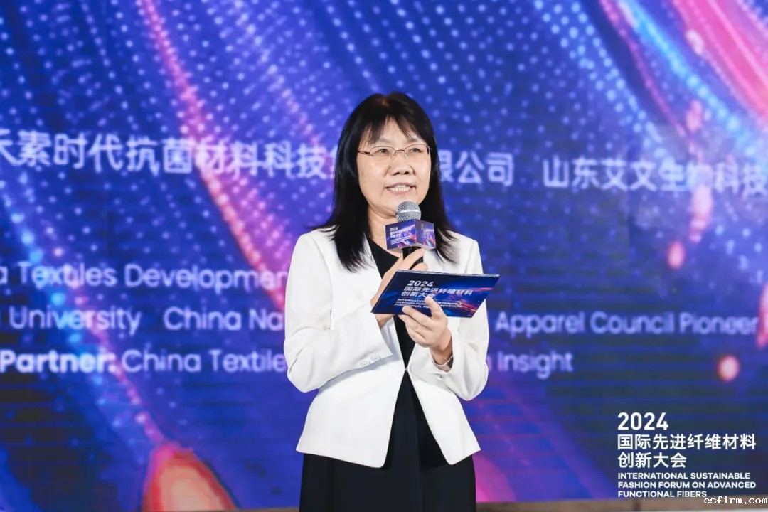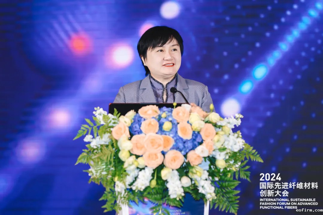 在先进纤维材料产业发展会议上,朱美芳、孟家光围绕先进纤维材料的创新趋势,如何注重材料升级和技术创新以满足消费者对高性能、多功能、可持续的需求等进行主题演讲。李斌红主持会议。