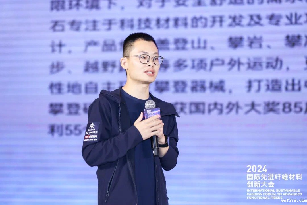 广州凯乐石运动科技有限公司面料开发专家马长彪在《专业户外运动的面料开发与材料应用》中分享了公司多年来一直深耕于功能服饰防护装备领域的经验和心得。凯乐石以户外装备的高标准进行研发,遵循专业化、轻量化、场景化要求。研发团队与全球顶尖户外用品材料供应商合作,在实际场景中打磨产品。未来,公司对高强度、高蓬松等性能的纤维材料有更多合作开发的诉求,希望与产业链上下游携手,共同推动专业级户外运动面料赛道的发展。