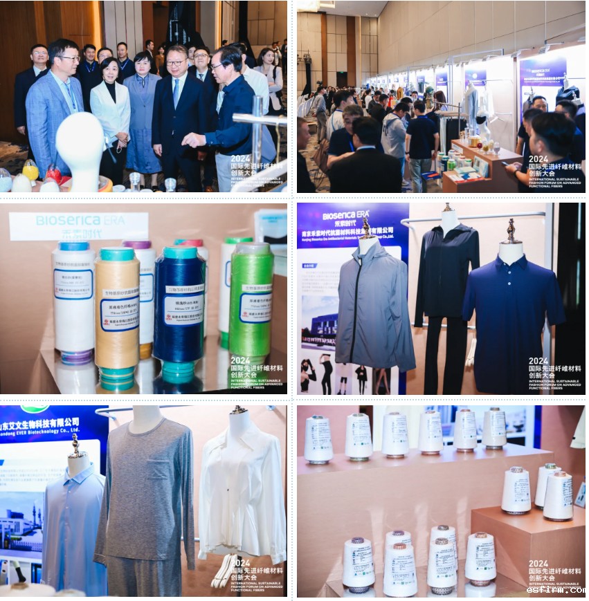 在论坛现场,一系列创新产品亮相纤维创新成果展示区。展区汇集了立新集团、京奕特种纤维、佳力高纤、禾素时代、永荣锦江、艾文生物、九州星际、海凯生物、三川纺织、青甲智能、太极石、意大来、德福伦、利夫生物、惠群新材料、汉塔纺织、盛意成、六福纺织等优秀纤维、纱线、面料和科技企业,呈现了企业在海藻纤维、功能性锦纶纤维、生物基纤维、聚酯短纤维等先进材料领域的最新研究成果。展示产品多维展现了创新纤维在女装、男装、运动、内衣等多个领域的开发设计与创新应用,促进了产业链上下游企业之间的深度交流,搭建了互惠合作的协同创新平台。