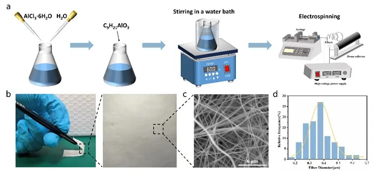 柔性氧化铝纤维膜(FAFM)是通过使用均匀分散的前驱体溶液进行静电纺丝制备的,具体过程如图1所示。