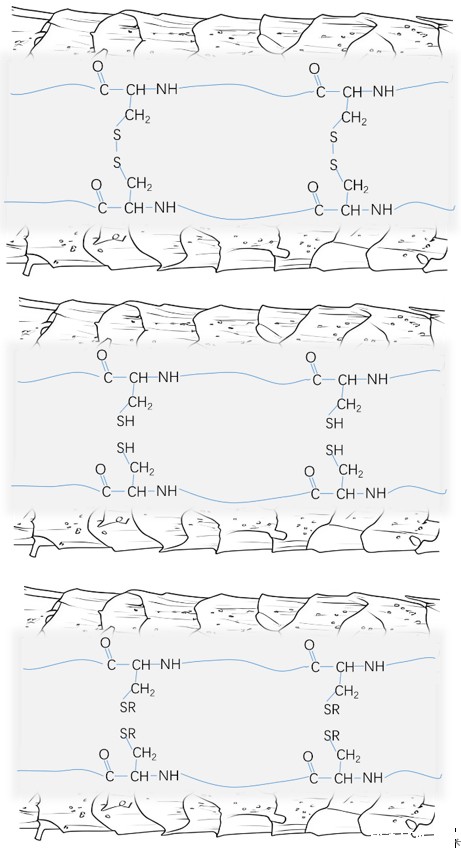 该技术在水洗过程中创造性的运用特殊化学处理方法,将羊绒角蛋白纤维中二硫键打开形成巯基键,并通过随后的改性过程,促使这些巯基键与反应活性单体发生加成反应,使之无法还原为二硫键产生回缩卷曲,而同时又使改性剂里的有效成分与蛋白纤维结合,生成盐式氨基酸加酯物,确保加工后羊绒衫外观呈现出耐久性的裘皮长毛的直立飘逸风格。该技术不仅可应用于羊绒衫的加工,还可用于混纺羊绒/毛衫、羊毛衫产品等。