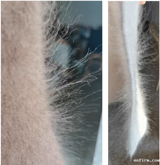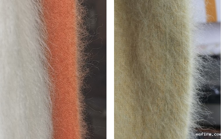 另一方面,也可以先经过机械预拉毛工序,然后再进行防毡缩-水洗-拉毛等工序,处理后面料外层具有直立飘逸的长毛羽,而内层则纹路清晰,这种既保持了面料的美观,又确保了穿着的舒适和透气性,非常适合制作男装。