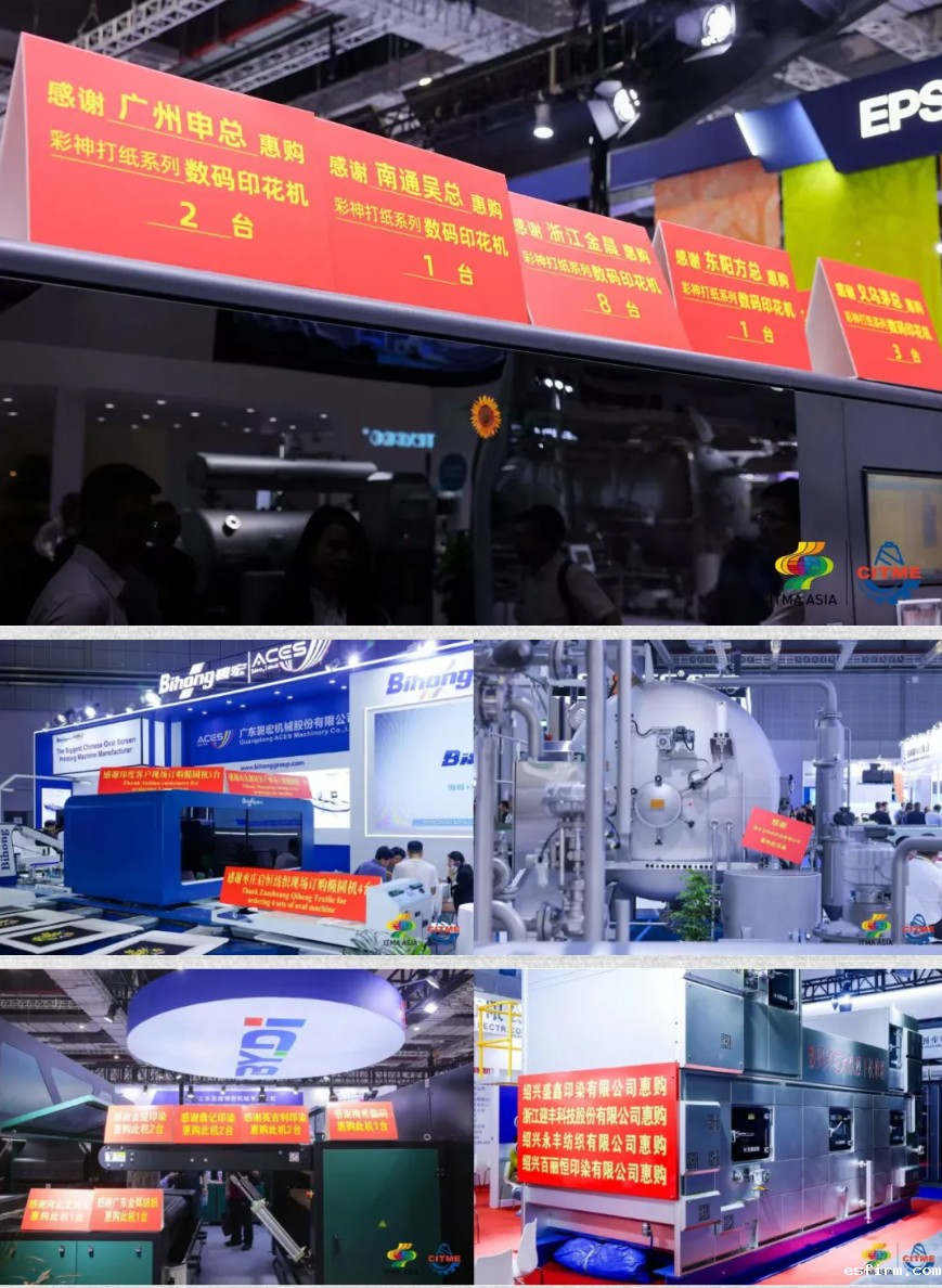 此外,深圳市润天智数字设备股份有限公司彩神X7高速直喷印花机新品发布并现场签售十余台;浙江博印数码科技有限公司展示新品64头数码印花机,现场与湖州梅希数码有限公司、绍兴英吉利印染有限公司、河北保定馨彩丝纺织品制造有限公司等签订购买合同及合作协议……展会首发首展优势显著,商贸成交效果斐然,参展企业与专业观众双向奔赴、落地有声!