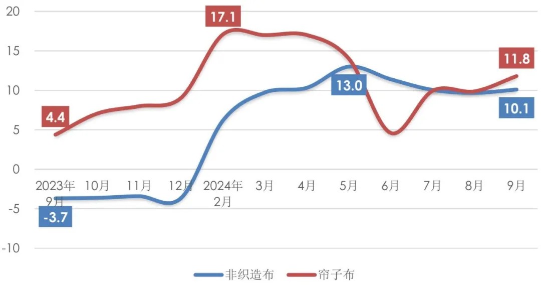 图2 我国规模以上企业非织造布和帘子布产量增速情况