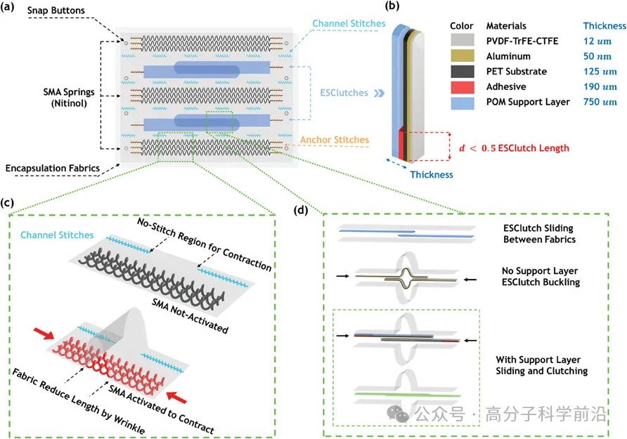 日前,针对此问题,洛桑联邦理工学院的Herbert Shea教授、博士生张华鹏通过集成软体静电离合器到基于记忆合金的布料致动器中,设计了一款新型致动器SEFA (SMA-ESClutch Fabric Actuator)。SEFA采用布料封装的架构,将记忆合金弹簧与静电离合器做成一个致动器模块。