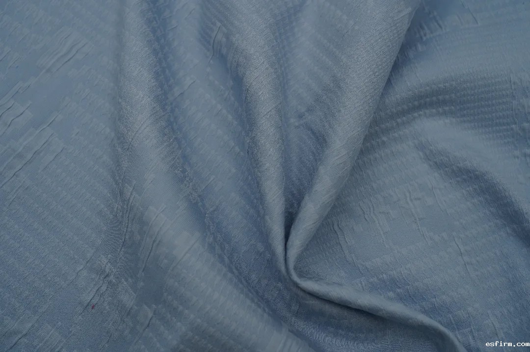 点评:采用企业高支莱赛尔纺纱专利技术,将交联型莱赛尔、新型生物基PLA/PHBV和再生棉材质搭配,实现面料触感干爽柔韧兼具抑菌、消臭功能,运用双层提花组织结构设计,将对比棋盘格和千鸟格几何图案巧妙组合,呈现泡绉肌理外观,结合低温上浆及染整工艺技术,无助剂空气柔软整理技术,打造多重低碳环保功能产品,适用于外套、风衣、裙装等。