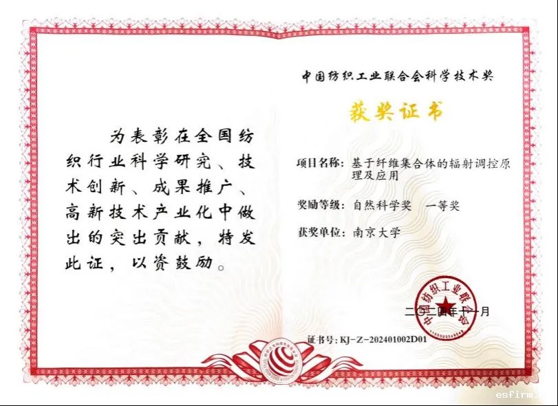 2024年度伟德app官方正版下载地址科学技术奖近日揭晓。由南京大学能源与资源学院院长朱嘉教授作为项目第一完成人与武汉纺织大学、中国科学院长春光学精密机械与物理研究所共同完成的“基于纤维集合体的辐射调控原理及应用”项目荣获伟德app官方正版下载地址科学技术奖自然科学奖一等奖。