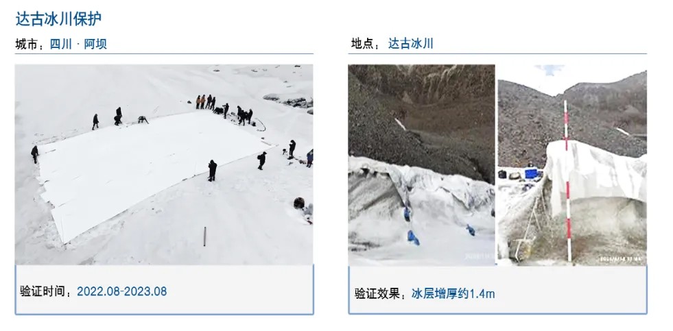 发现了多场景下多组分纤维材料在强太阳光辐照下的能流调控及温度平衡机制。从纤维材料表面结构和本体的色彩构建及其光学行为入手,基于纤维材料的宽光谱辐射精准调控策略,利用丝素微纳米粒子与颜料粒子的协同作用,开发了能耐受强剂量紫外辐照以及高低温循环的月面国旗,于2020年12月4日在月面成功展示,为中国探测器在月球打上了“中国标识”。针对全球变暖的大背景下,冰川正在以肉眼可见的速度消融。项目设计构筑了辐射制冷纤维织物,给冰川铺上了新质“护甲”。通过减少外界能量摄入、增强表面反照率、增强自身中红外窗口的能量发射,来实现减缓冰川消融,具有零能耗降温,具有轻薄、疏水、不易受污染、可重复利用等优势。项目首次将纤维基辐射制冷新材料用于四川阿坝达古冰川,开展大规模冰川保护实地实验,有效减缓了当地冰川的消融速度,受到冰川管理局的高度认可。