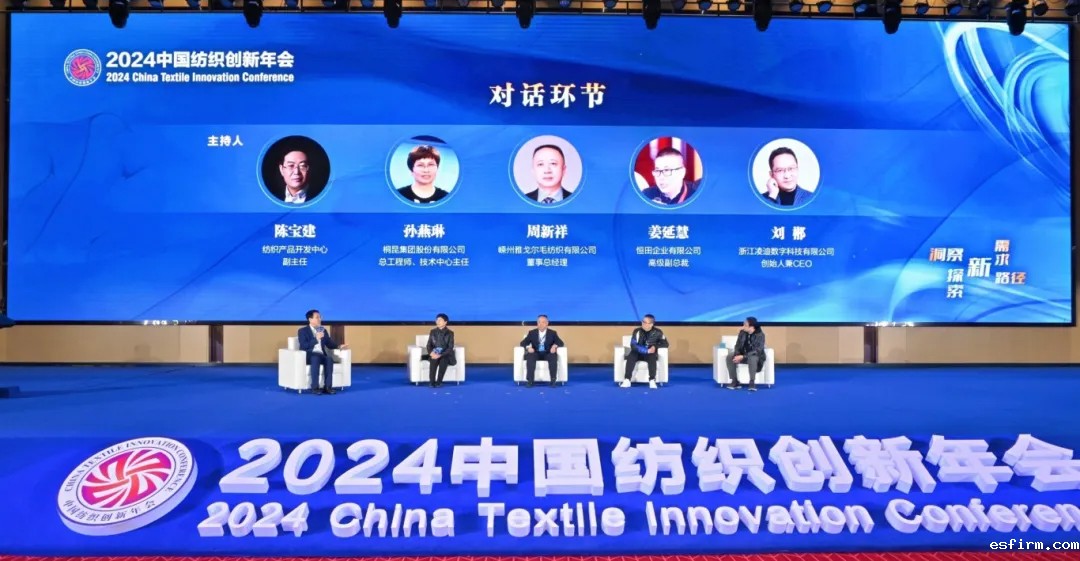 在对话环节,陈宝建围绕“打造细分赛道新优势,聚力产品开发新体系”的议题,从战略选择、管理体系、应用场景、数据价值、技术优势等维度,与来自纤维、面料、服装以及数字科技领域的企业嘉宾展开了深入交流。