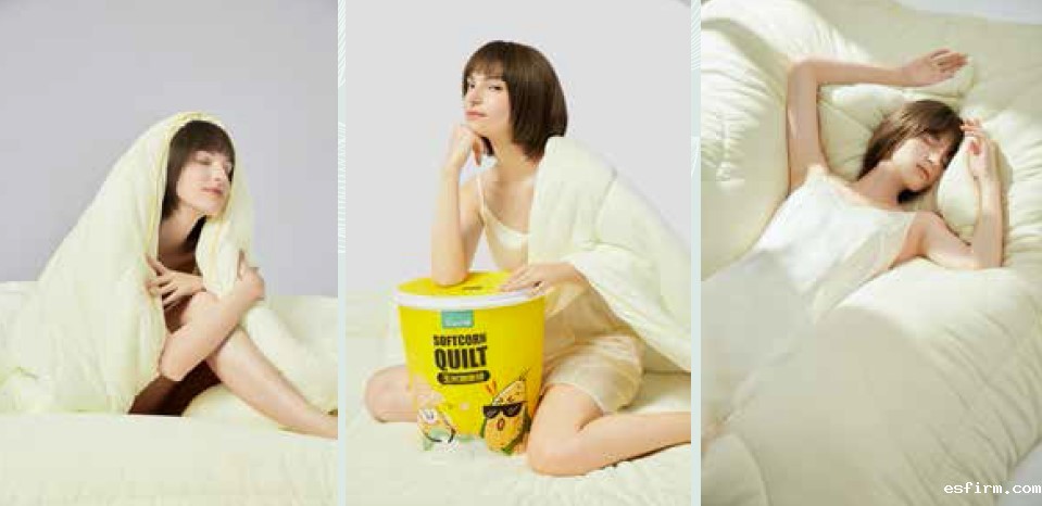 目前,在家纺领域,已经出现众多产品应用了聚乳酸纤维。如愉悦家纺有限公司开发的玉米抱抱被面料采用100%聚酯纤维,填充纤维中应用了10%聚乳酸纤维和90%聚酯纤维;江苏富之岛美安纺织品科技有限公司的多款床品和枕头的填充物应用了100%聚乳酸纤维。