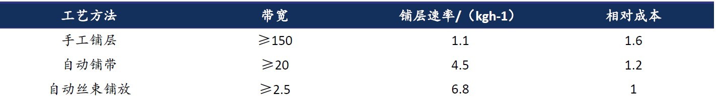 手工铺叠预浸料的过程通常较为缓慢且成本较高,因此自动化技术如自动铺带(ATL)和自动丝束铺放(AFP)技术应运而生。ATL技术通过自动铺带机实现,该机器的铺带头能够根据结构件的边界轮廓自动完成预浸带的铺设和特定形状位置的切割。相对于手工铺叠,该技术可以显著降低制造成本,大幅提高生产效率。而AFP技术则是采用多丝束铺放头,可以根据构件形状自动调整纱束根数,实现局部加厚、混杂、加筋、铺层递减和开口铺层补强等多种设计要求,还可铺放宽度可变的预浸带,能够实现连续变角度铺放(Fiber-Steer技术),满足复杂构件的制造需求。