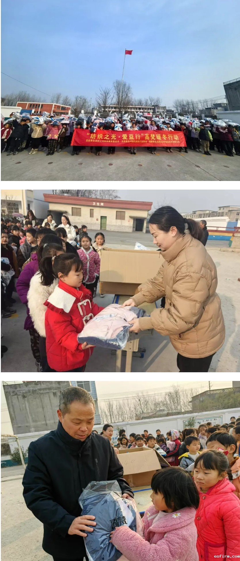 1月2日,第一批捐赠物资送达安徽临泉县迎仙镇中心小学,崭新的羽绒服为留守儿童和困难家庭的孩子送去2025年的第一缕温暖,让他们在寒冷的冬天感受到来自纺织行业的关爱。目前爱心物资正在陆续发放中。