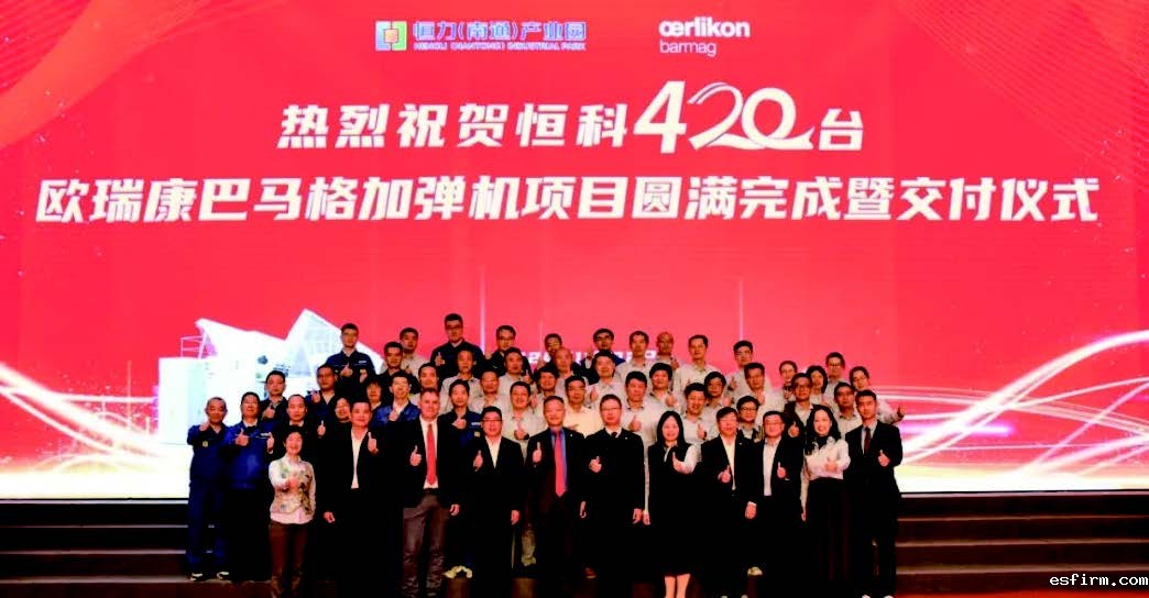 2024年11月22日,Oerlikon Barmag(欧瑞康巴马格)在恒力集团三大化学纤维产业基地之一南通恒科产业园举办恒科420台欧瑞康巴马格加弹机项目交付仪式。欧瑞康(中国)科技有限公司总经理王伟东、江苏恒科新材料有限公司总经理柳敦雷以及两家公司核心管理团队共同出席了此次活动。