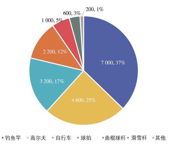 碳纤维复合材料在钓鱼竿、高尔夫球杆、自行车、网球/羽毛球等球拍、曲棍球棒、滑雪杆等体育休闲产品中广泛应用。据统计,2023年体育休闲市场对碳纤维的需求量为1.88万t,预计未来将以3%的年均复合增长率平稳增长,至2030年将达到4.00万t。