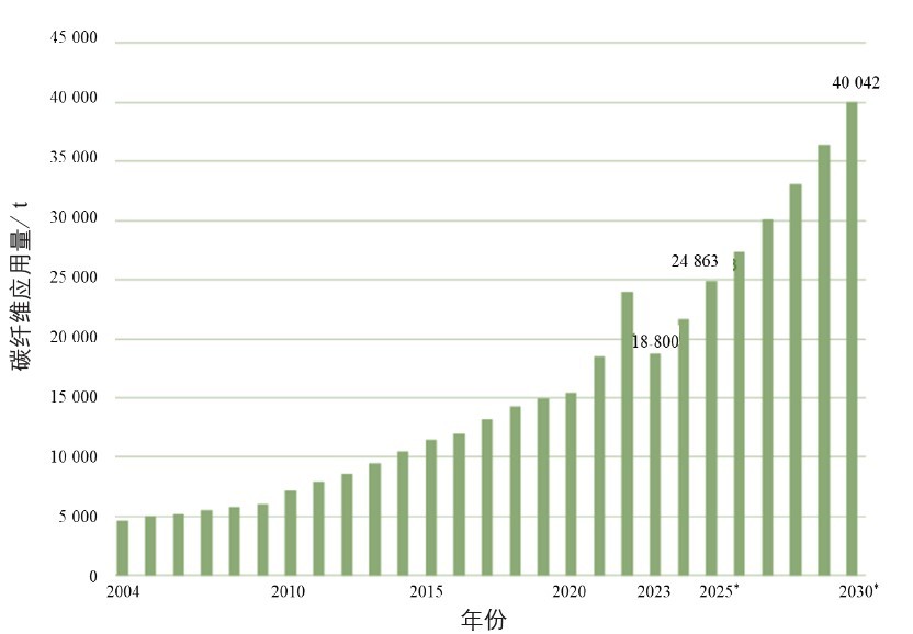 2004 — 2030年全球体育休闲市场碳纤维需求量