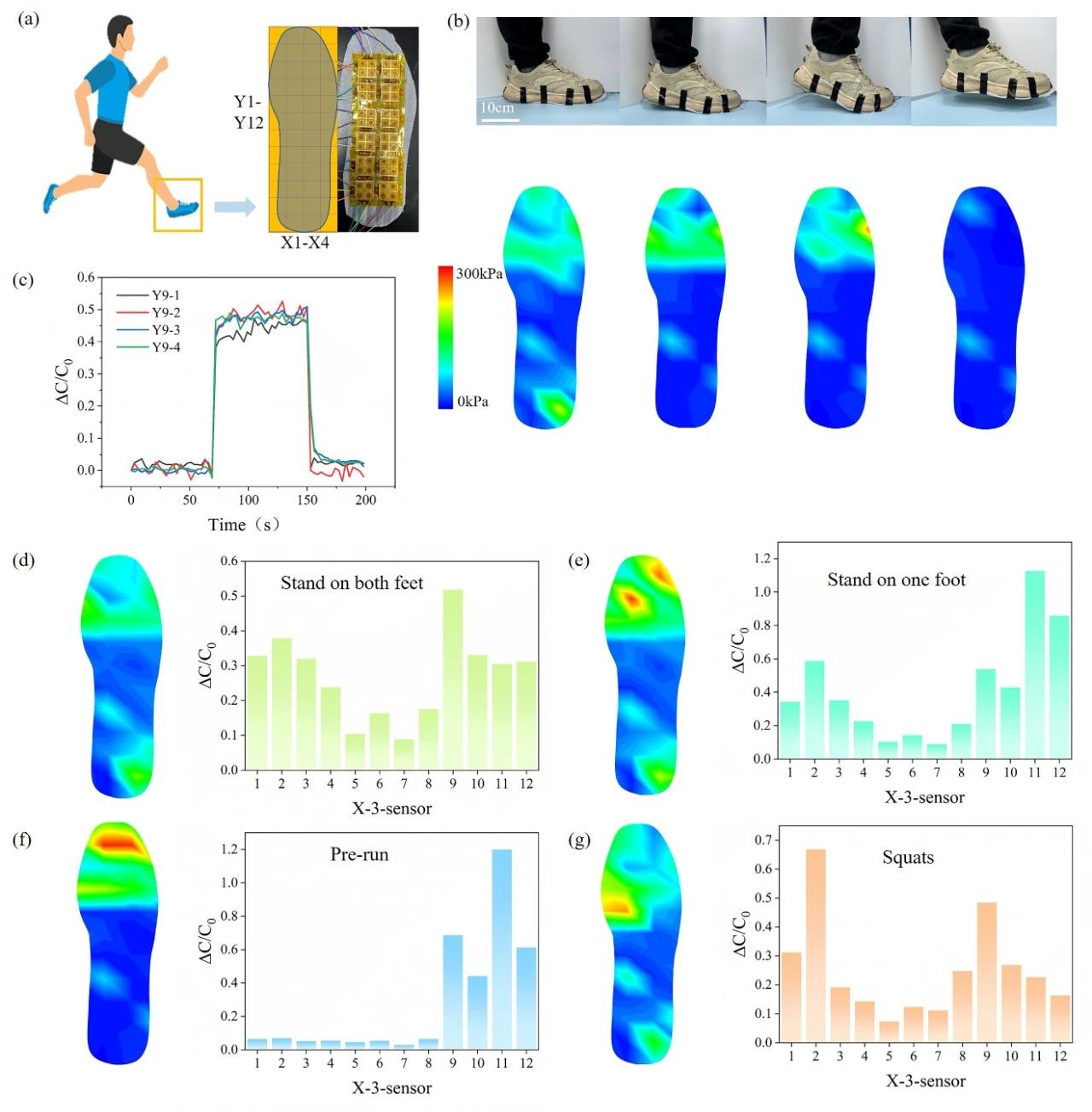 图5:小尺寸柔性压力传感器阵列在足底压力检测上的实际应用