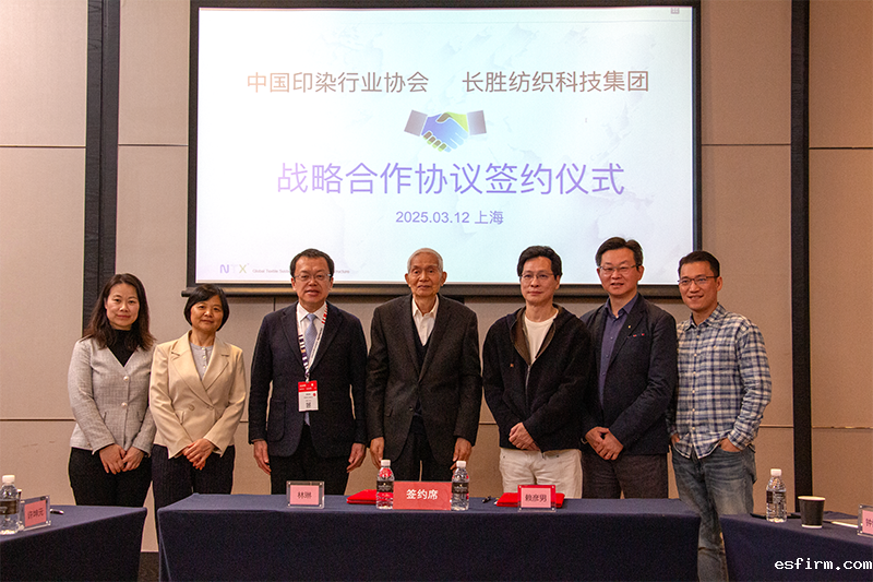 3月12日上午,在中国国际纺织面料及辅料博览会期间,中国印染行业协会与长胜纺织科技发展(上海)有限公司,于上海共同签署战略合作协议,旨在携手长胜纺织科技推广绿色印染工艺技术设备的应用,推动中国纺织行业的技术创新和绿色发展。