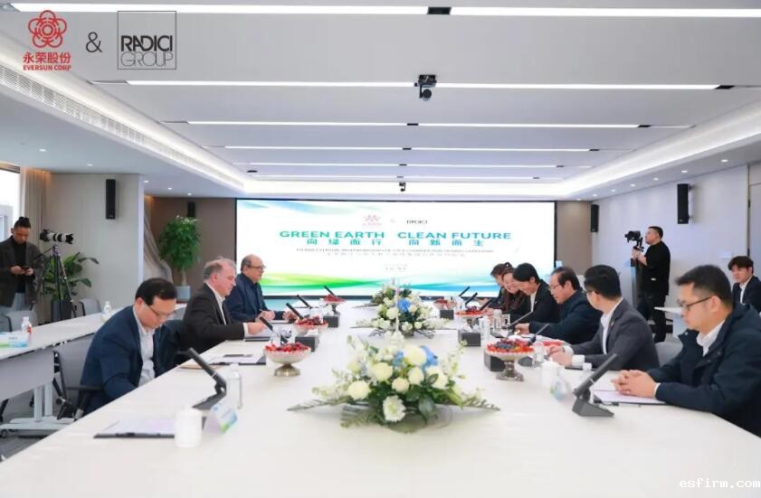 3月13日,福建永荣锦江股份有限公司与意大利兰蒂奇集团(RADICI GROUP)迎来了具有里程碑意义的时刻,双方就消费后再生领域的长期战略合作举行了签约仪式。本次活动以“向‘绿’而行,向‘新’而生”为共同信念,依托兰蒂奇集团全球领先的高性能聚合物技术,永荣锦江将实现E-SUNLON®爱赛纶消费后再生纤维从研发到市场应用的完整闭环,推动企业绿色化战略落地,携手抢占全球循环经济的产业制高点。