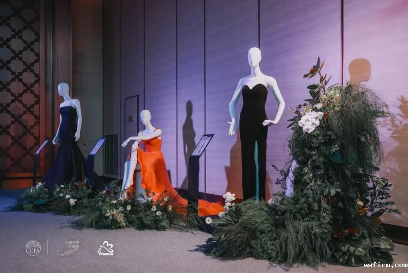 图 | 在本次发布会入场静态展区展示了桐昆集团往届3套绿色纤维礼服。