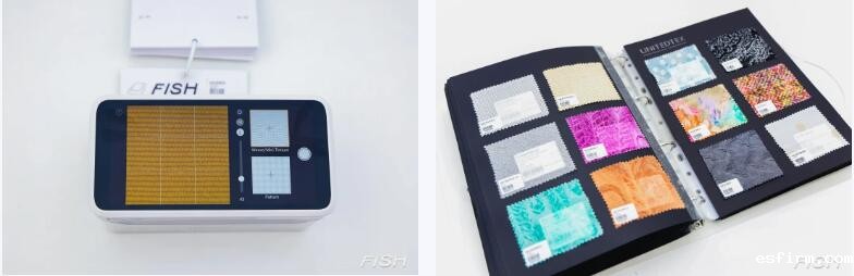FABVIZION这款手机大小的设备内置了FISE(Fabric Intelligence Search Engine)织物智慧搜索引擎,基于30多万款面料大数据建库与持续机器深度学习训练,能够实现织物品种、织物花型、织物印染成品现货等多维度的实时在线搜索,可在数百万级样本库中实现精准匹配。其“灵感延伸”功能还能够根据选择面料的纤维成分、色彩花型、组织结构、加工方式、纱支密度等特征,自动推荐风格相似的关联产品,宛如一位时刻在线的AI设计助理。