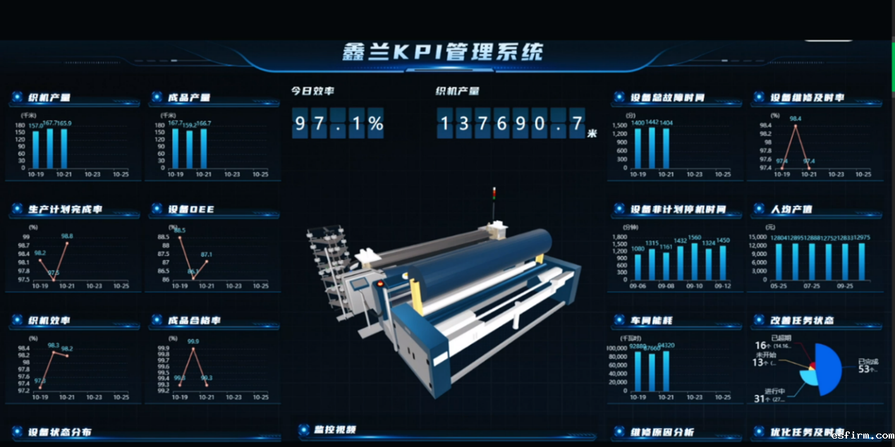 项目成果已在浙江鑫兰纺织有限公司落地实施,自实施智能整理产线后,企业核心竞争力和经济效益得到稳步提升,品牌客户占比增加35%,织造效率提高8%,生产周期缩短28%,单位可比能耗下降5%,产品合格率提高2%,全员劳动生产率提高25%,劳动强度降低40%。通过加强产业链上下游企业的合作与协同,促进数据驱动的织造智能工厂技术在整个纺织产业链中的推广和应用,有助于形成产业链上下游的良性互动和协同发展。