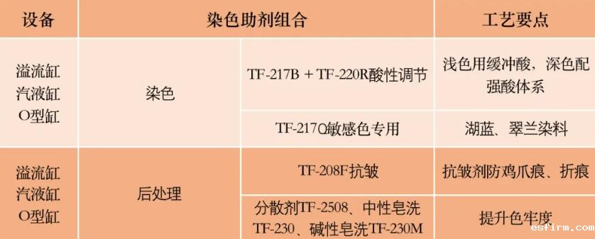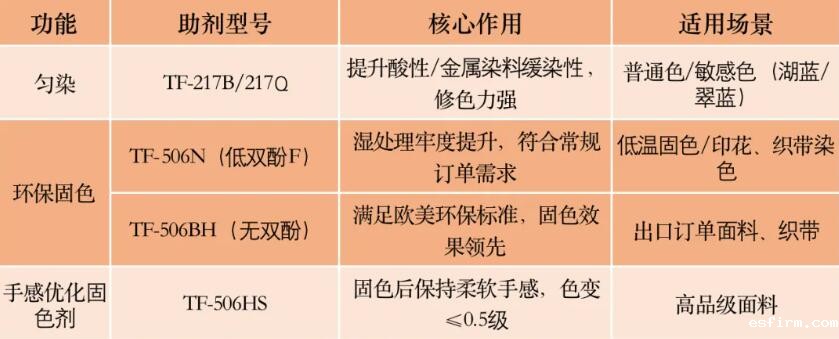 采用抗热黄变剂(温度>160℃时),防止纤维氨基氧化导致的:① 浅色系布面黄变;② 深色系染色深度不足