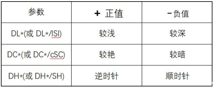对于深浅DL*, DC*的描述大家都没有任何问题,但是对于DH*的描述经常与Da*, Db*的描述产生差异甚至相反,这主要是Da*, Db*属于分色差的描述,DH*属于综合色光的描述,具体的描述如下: