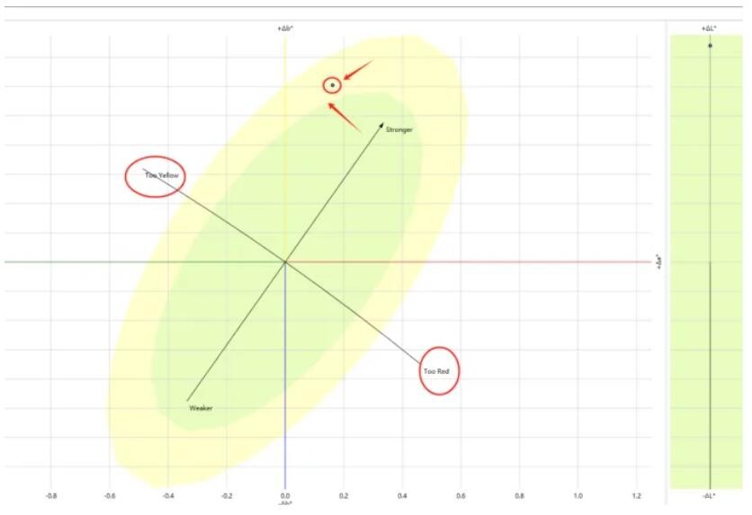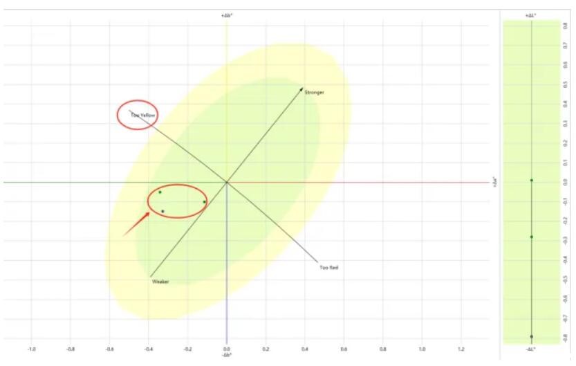 既然出现了如此的差异,甚至相反的方向,如何去判定,其实这也是不矛盾的, 根据前面讲的,调色人员更喜欢根据DL*, Da*, Db*的描述来进行调色,对于颜色判色人员或者QC人员更多的是看DL*, DC*, DH*的描述,更接近目视的综合判定。