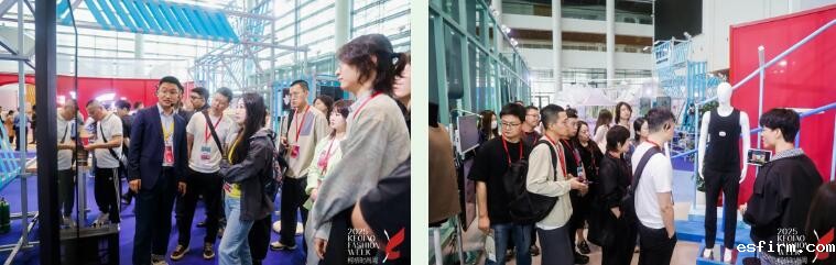 会议主办方还组织参会品牌嘉宾走进了2025中国绍兴柯桥国际纺织品面辅料博览会(春季),与参展的柯桥优秀纺织企业展开了深入交流与对接。从醋酸、莱赛尔、莫代尔、索罗娜、锦纶、铜氨、涤纶等丰富材质,到防水、防晒、抗菌、凉感等多元功能,柯桥企业展示了在时尚设计、科技功能、绿色环保三个方面的最新开发成果,精准契合了品牌的面料采购与产品研发需求。此外,品牌嘉宾还参观了柯桥时尚设计展(春季),通过观摩DPI SPACE人工智能创意平台、3D虚拟服装设计设备、智能监测服装等先进科技和产品,深入了解了AI技术与时尚设计、生产工艺、市场营销的融合应用方向。