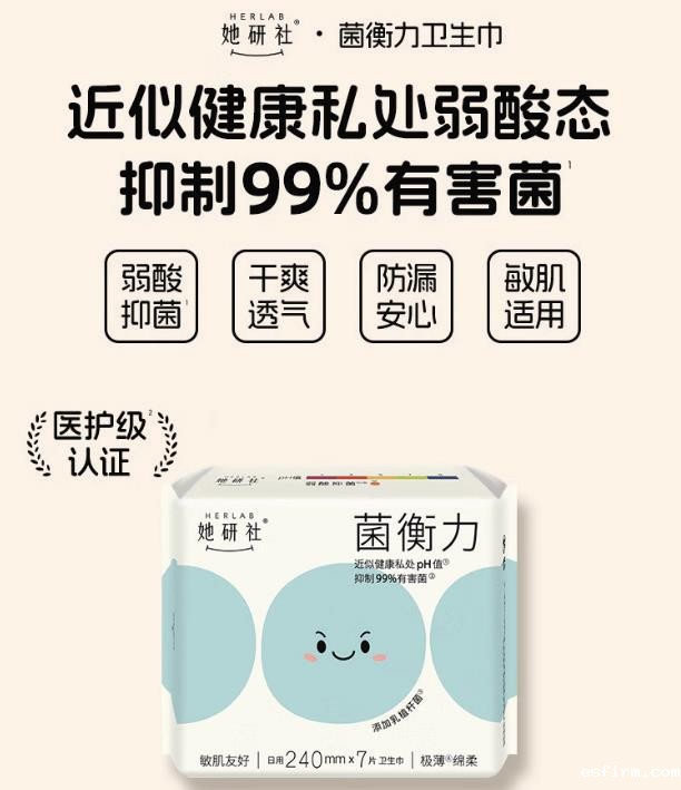 弱酸非织造布在女性卫生用品领域如卫生巾、护垫等产品中也有广泛应用。随着女性自我呵护意识的增强和生活品质的提升,她们在选择卫生用品时,愈发注重产品的抑菌效果。因为潮湿环境易成为细菌滋生的温床,从而可能引发感染,威胁女性健康。而弱酸非织造布凭借其独特的抑菌性能,能有效遏制细菌的生长与繁殖,为女性营造一个更加安全、健康的卫生环境。同时,亲肤的特性也使其成为女性卫生用品领域的理想之选。目前,已有她研社菌衡力卫生巾、云南白药菁羽乳丝卫生巾等知名品牌产品采用弱酸面层技术,同时市场上多家卫生巾制造商也在积极研发或应用该技术,推出弱酸性表层护理系列新品。
