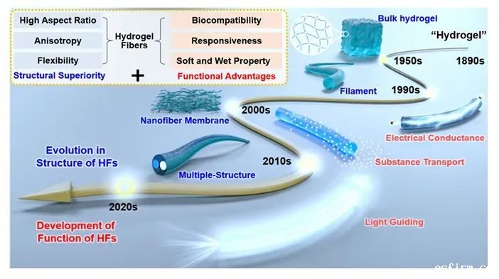 水凝胶纤维是一种结合了水凝胶材料的柔软性、湿润性、生物相容性和环境响应性,以及纤维材料的高长径比、各向异性和柔韧性的材料。这种材料因其独特的结构和功能特性,在生物医学、能源、环境科学等领域具有广泛的应用潜力。