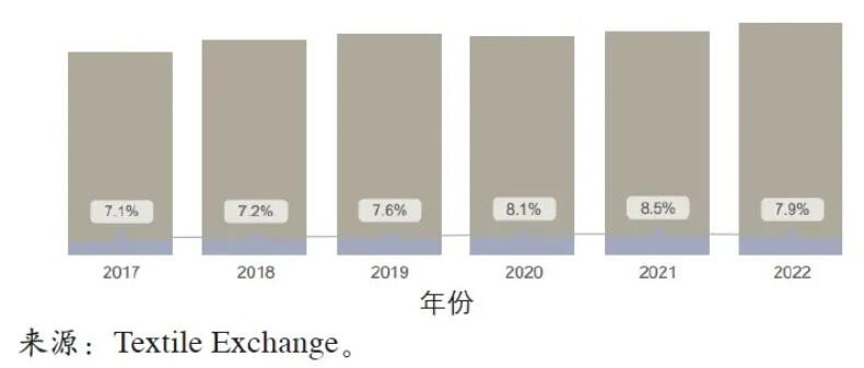2017—2022年全球回收再利用纤维占比