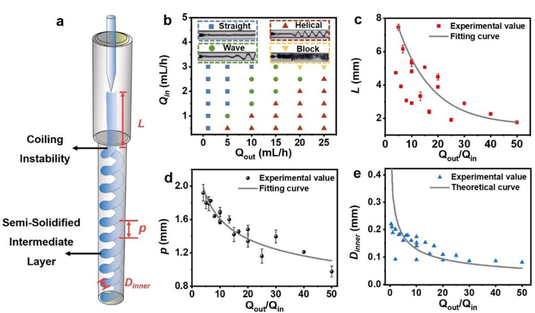 图2 内层流体的螺旋结构形成机制及工艺参数调控