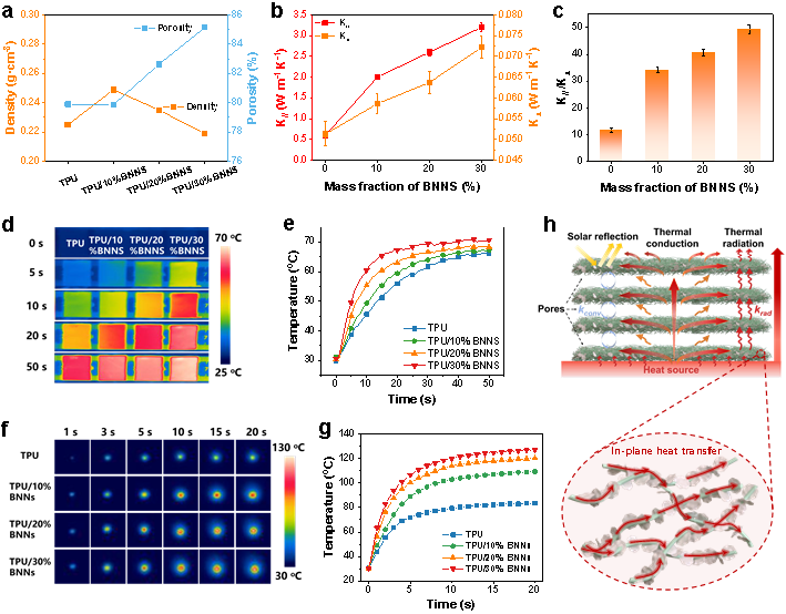 图3. TPU/BNNS冷却织物的各向异性导热性能