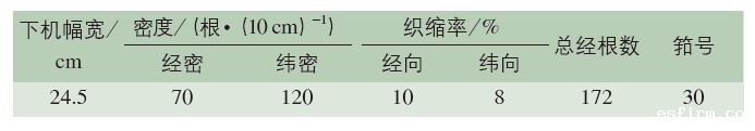 表 1 织物规格参数