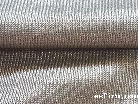 通常将具有导电特性的纤维与常规天然或合成纤维进行混纺,制备得到具有优良导电性的混纺纱,随后按照特定的组织结构和规格进行上机织造,得到具有防电磁辐射功能的针织或机织产品。常用导电纤维包括金属纤维(不锈钢丝、银丝、铜丝等)、表面镀覆金属的纤维、本征导电高分子纤维、碳纤维等。混纺织物的电磁屏蔽性能取决于导电纤维自身性能、纤维间的协同作用以及织物结构等,所制备的电磁屏蔽纺织品普遍具有物理强度高、电磁屏蔽性能稳定的优势,应用十分广泛。当前,更多研究集中在如何提高混纺纤维电磁屏蔽纺织品的服用舒适性方面,如采用包芯纱结构,以导电纤维为芯层,常规纤维为皮层,进一步提高纺织品的柔软手感。