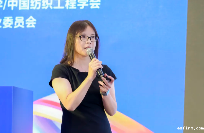 中国纺织科学研究院有限公司副总经理崔桂新作《高品质全国产化功能性纤维成套技术及其在针织产品的应用实践》主题报告。她介绍了公司的两大成果——高品质原位聚合原液着色聚酯纤维大容量制备关键技术及产业化和稀土功能纤维&“智能调温”面料。前者突破高储存稳定乙二醇基超细颜料色浆连续制备技术、高品质原位聚合原液着色聚酯大容量连续聚合熔体直纺技术、多功能原位聚合原液着色聚酯纤维大容量柔性化制备技术、原液着色原位聚合聚酯高效低成本转产技术等关键技术,形成了高品质原液着色原位聚合聚酯纤维大容量制备产业化成套技术及装备。后者则是利用稀土元素独特的光学、热学和化学特性,改变纺织材料与太阳能量和人体辐射的作用状态,赋予织物热调节的性能,开发出稀贝丝®墨暖和稀贝丝®冰逸两款纤维,目前项目正处于试用推广阶段。