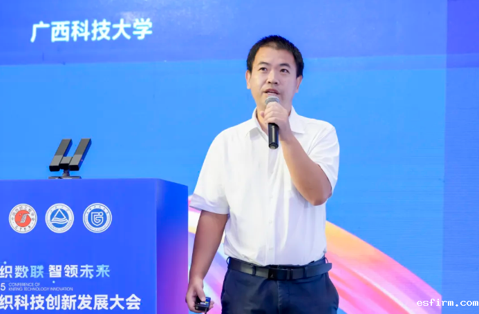 广西科技大学校党委副书记宾月景在致辞时表示,广西科技大学于2007年开办纺织工程本科专业,是广西唯一一个开设此专业的大学。近年来,学校纺织科学与工程学科始终保持着良好的发展态势,2018年获批纺织科学与工程一级硕士学位授权点,2023在材料与化工中增设纺织工程专业硕士。此次广西科技大学天虹现代纺织产业学院与江南大学针织技术教育部工程研究中心联合承办2025针织科技创新发展大会,是学校纺织学科发展的又一次里程碑大事,希望通过这次交流合作,进一步提升广西科技大学纺织产业学院的办学和科研水平,更好的服务地方产业的发展。同时,他指出,本次大会以“针织数联 智领未来”为主题,立足全球贸易格局深度调整和针织行业智能化、数字化转型的关键期。会议的成功召开必将为政府机构、行业组织、企业和科研机构搭建有效的沟通桥梁,促进政、企、产、学、研、用针织行业的全链路协同创新,推动我国针织技术进步与针织产业创新发展,进一步促进构建具有国际竞争力的现代化针织产业体系。