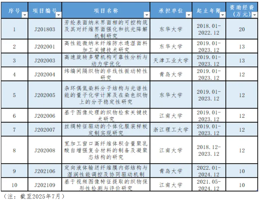 2025年“纺织之光”应用基础研究项目结题验收项目