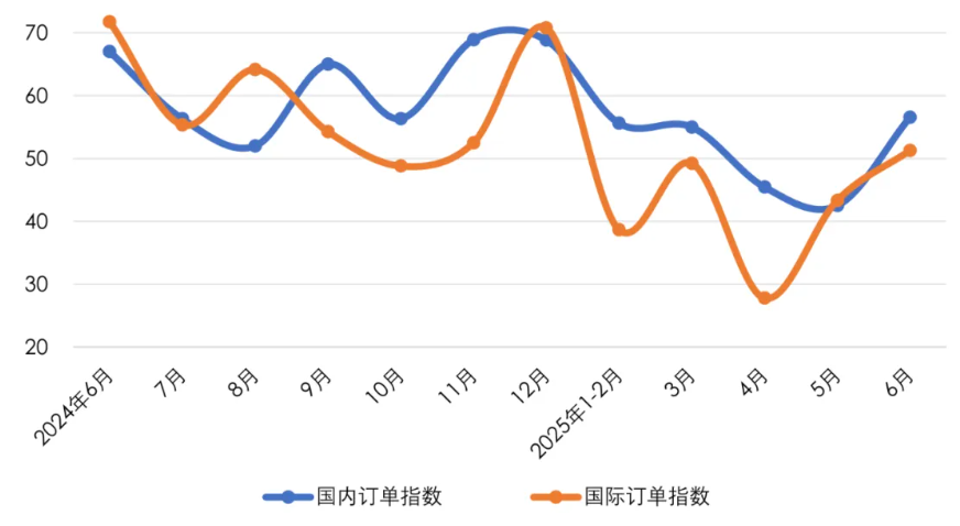 图2 2024年6月-2025年6月产业用纺织品行业国内外市场需求情况